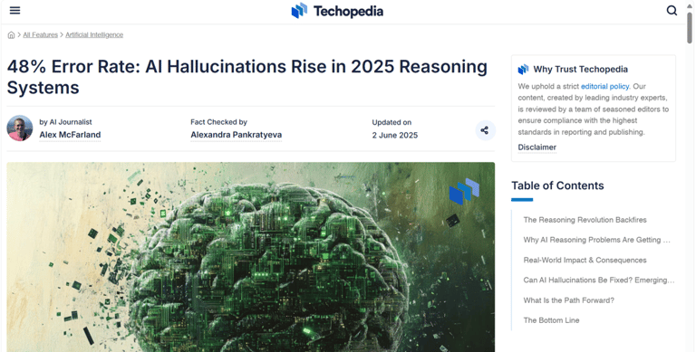 48% Error Rate: AI Hallucinations Rise in 2025 Reasoning Systems - Techopedia