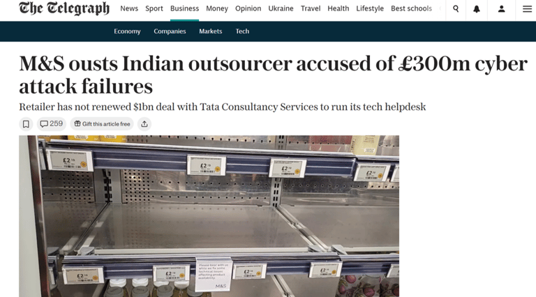 The retailer, which lost an estimated £300m from the hack, has ended a long-running contract with Tata Consultancy Services (TCS) to operate the FTSE 100 company’s technology helpdesk.
